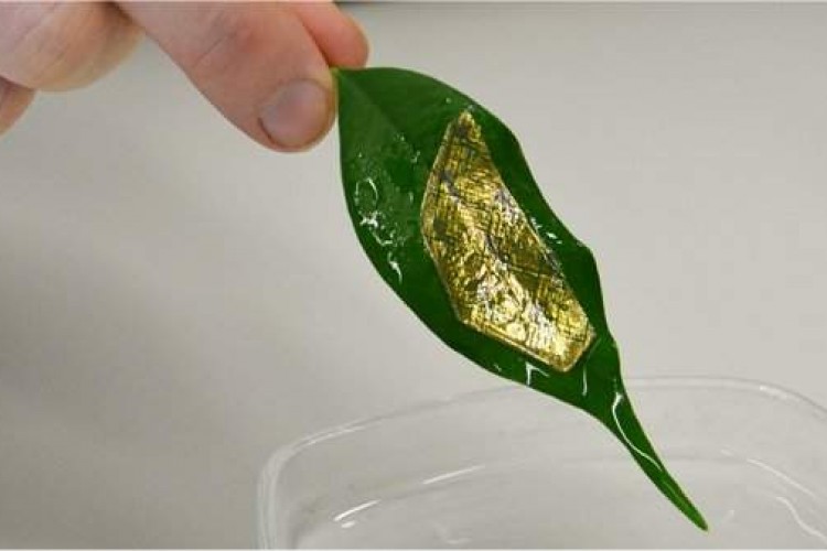 A membrana eletrônica flexível adere como cola a virtualmente qualquer superfície - uma folha, por exemplo. [Imagem: Peter Rueegg/ETH Zurich]